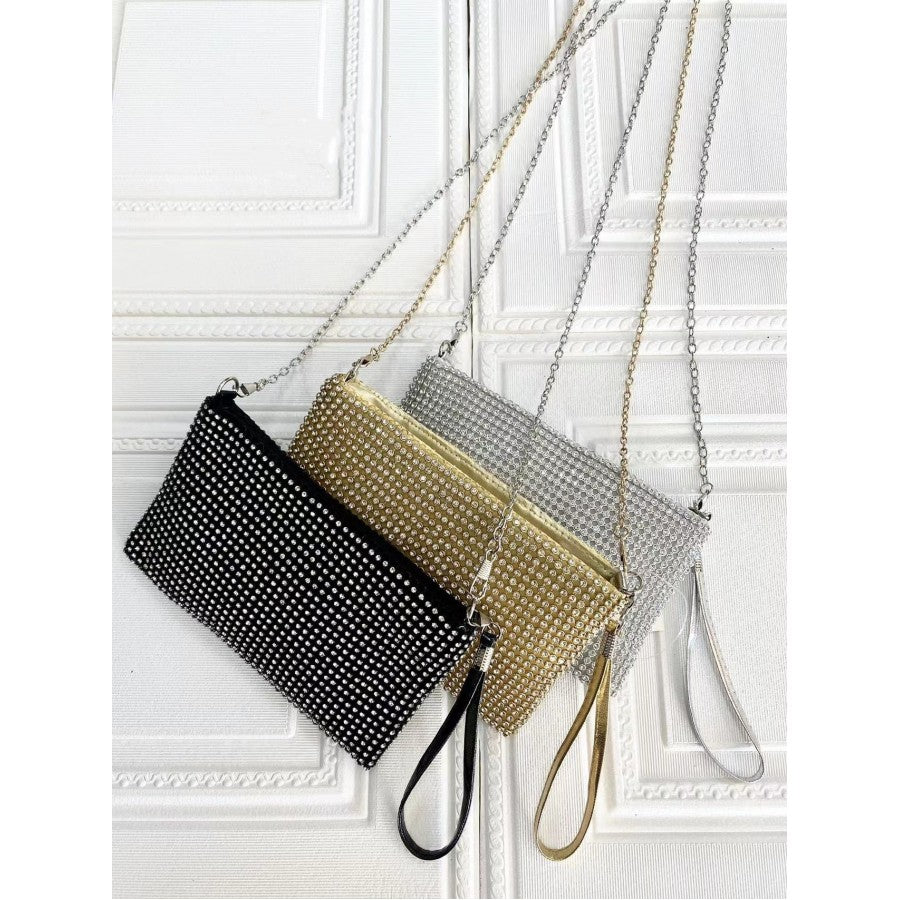 This shiny diamond coated clutch bag is ideal for special occasions when you need a smart bag.