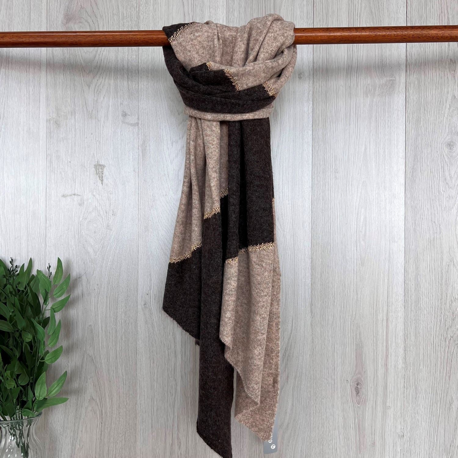 Cosy Colour Winter Wrap/ Scarf with Gold Trim - Choice of colours