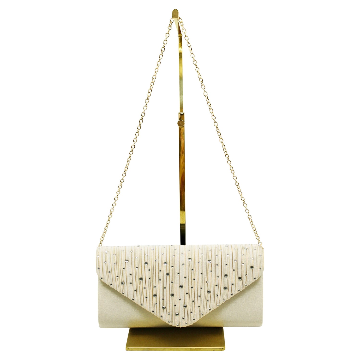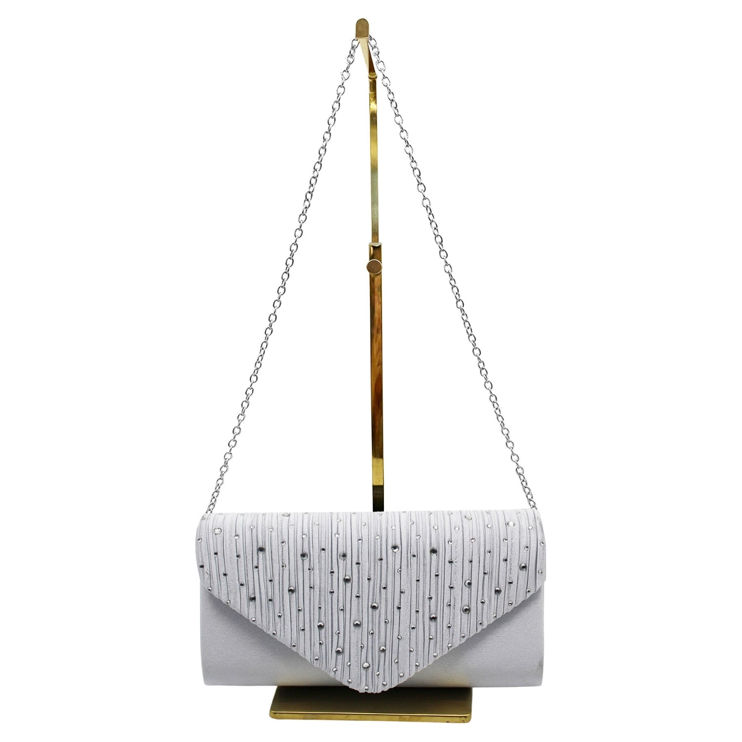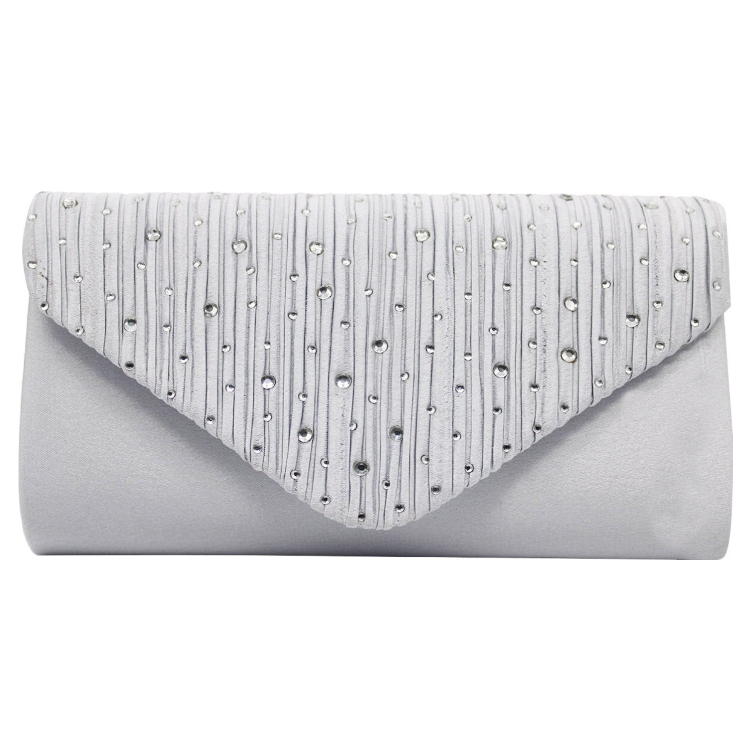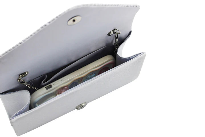 Envelope Style Clutch Bag with Rhinestones - Silver or cream