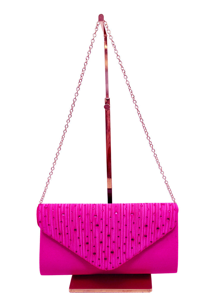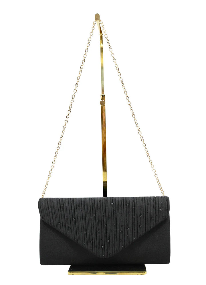 Stylish envelope style clutch/shoulder bag with sparkly rhinestone embellishments and a useful detachable chain shoulder strap. Perfect for those weddings and other special occasions.