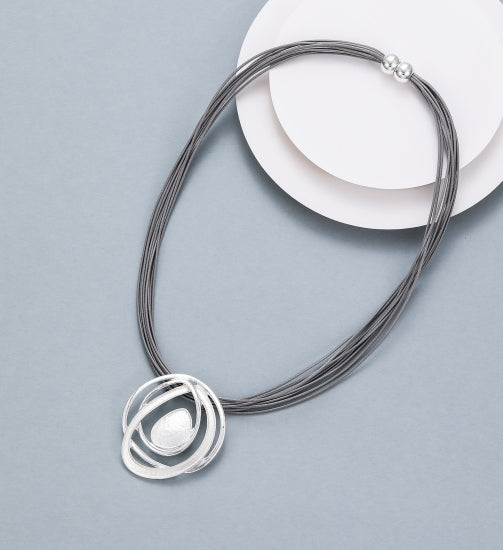 Gracee Short Cord Necklace with Silver Overlapping Circles Pendant