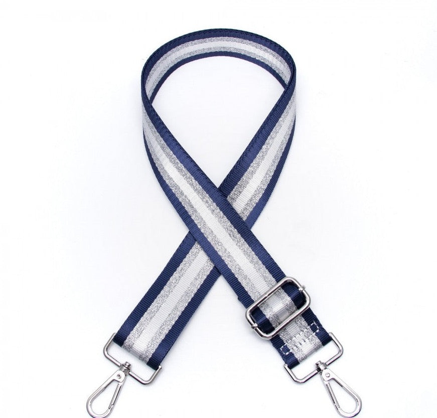 Interchangeable Bag Strap - Navy, Gold or Silver Stripe