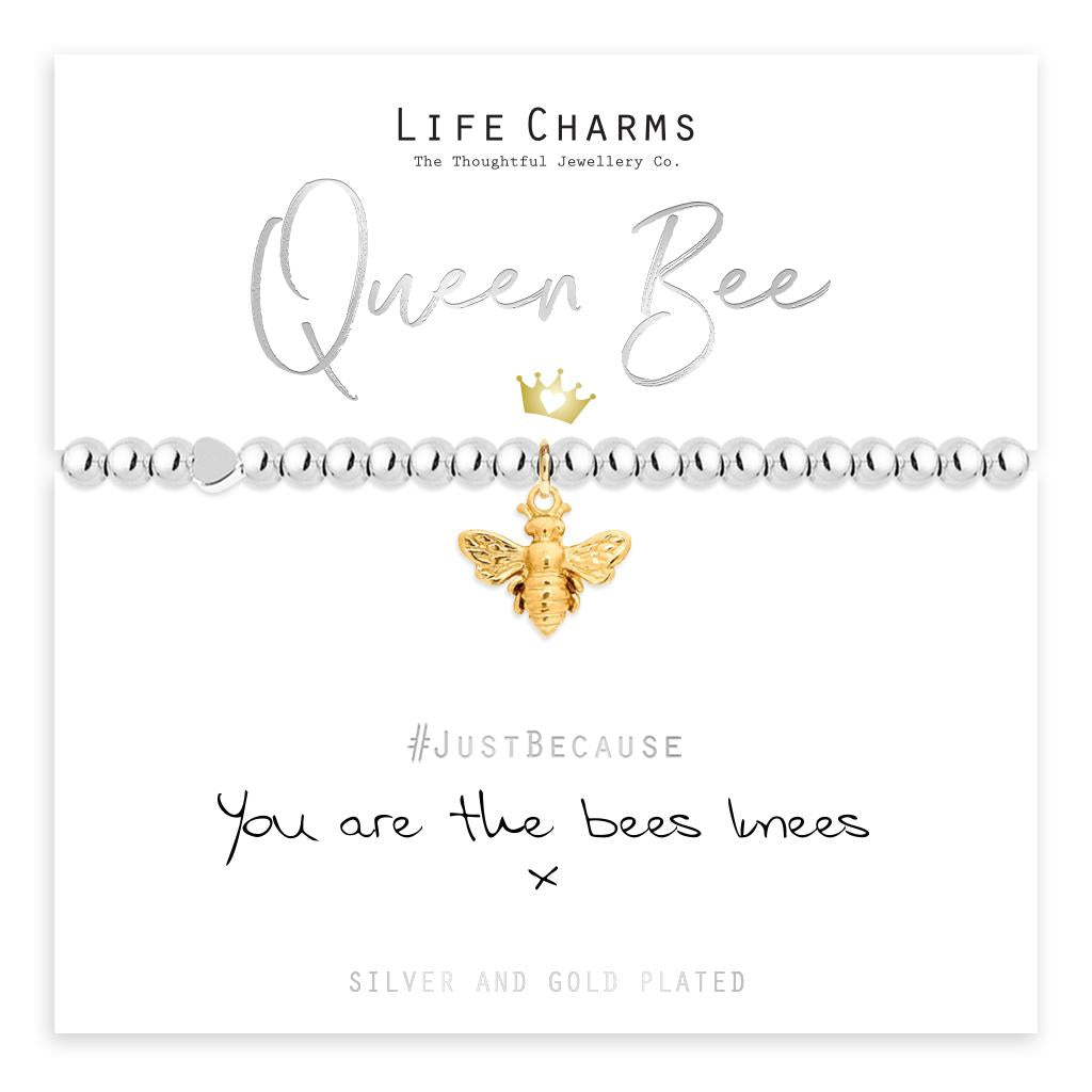 Life Charms Silver Plated Beaded Stretch Bracelet - Queen Bee