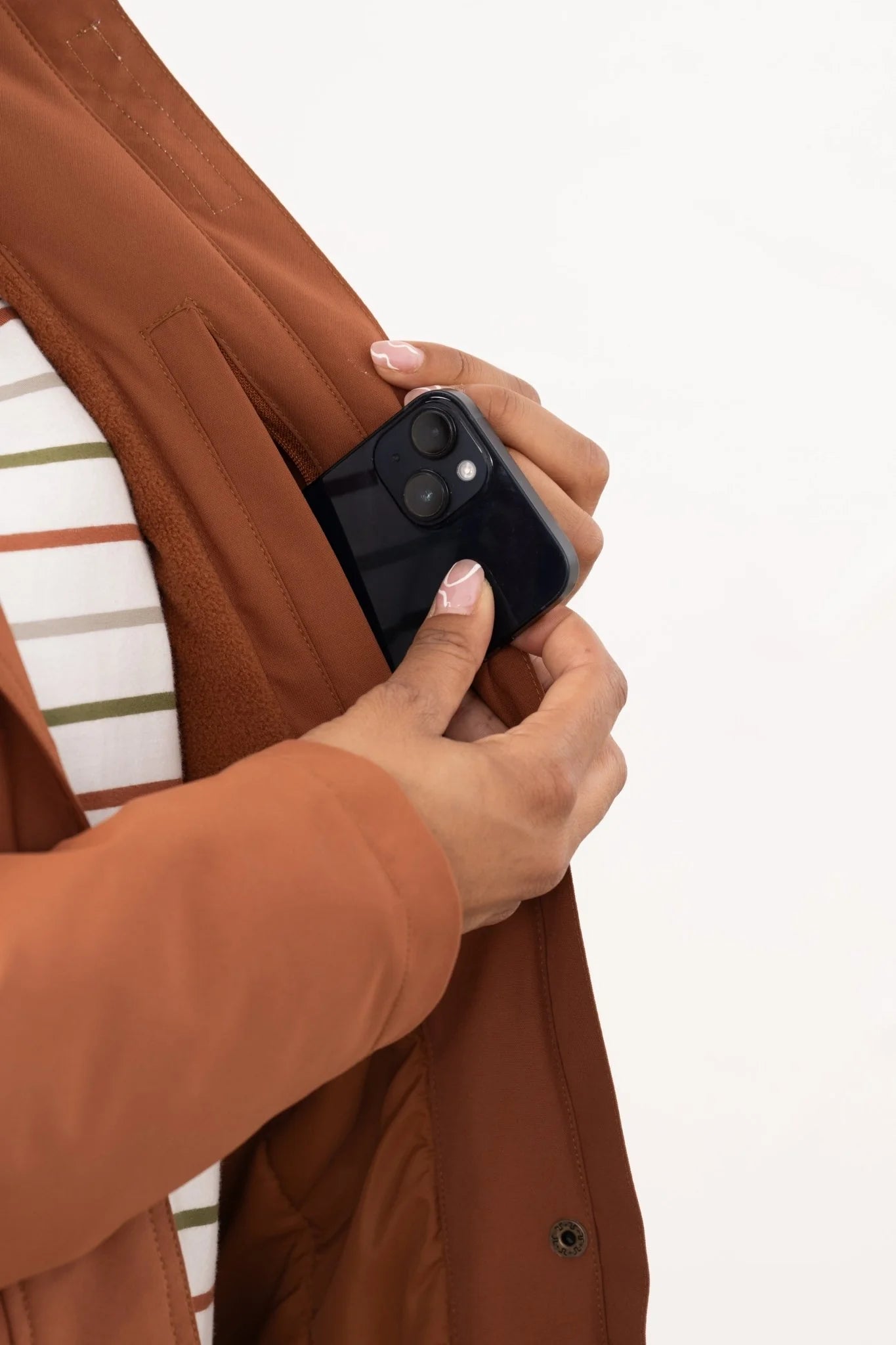 Imogen; A waterproof, windproof, and breathable coat with a relaxed fit and cosy fleece lining.