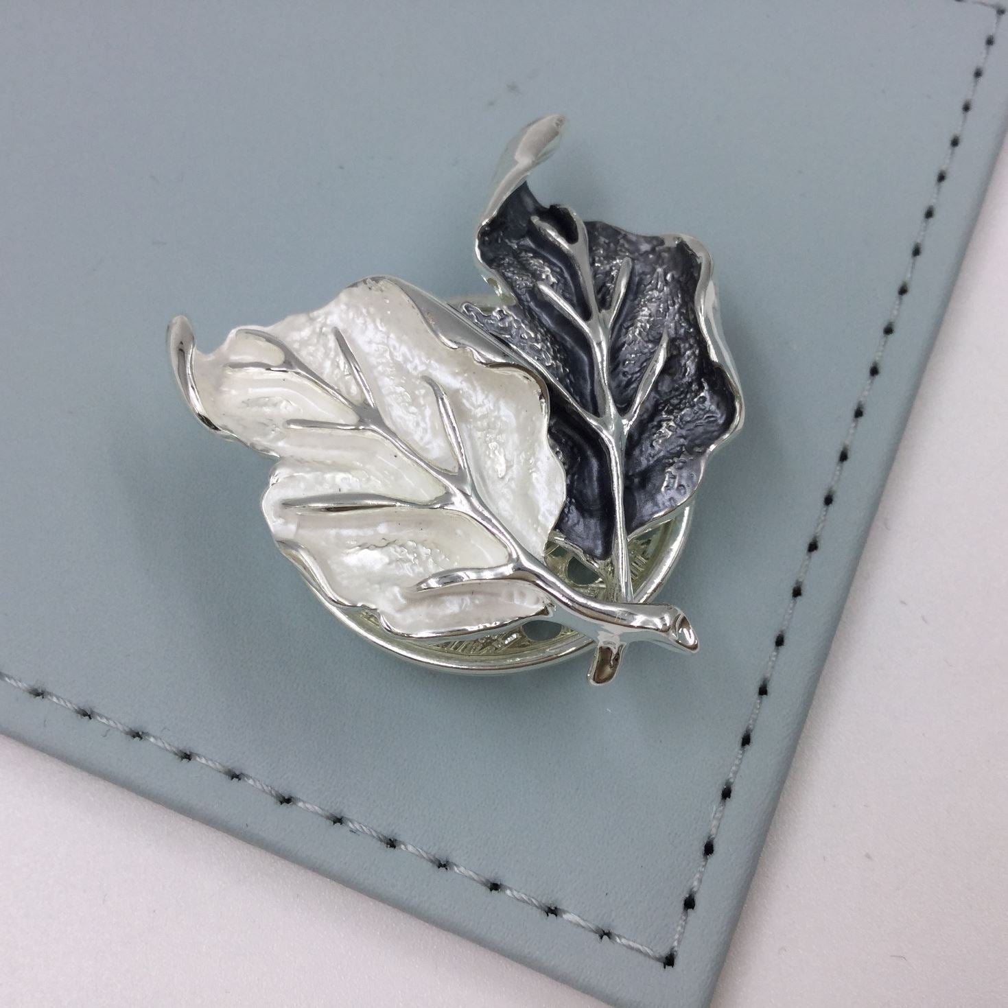 Magnetic Scarf Brooch - Silver Twin Leaves