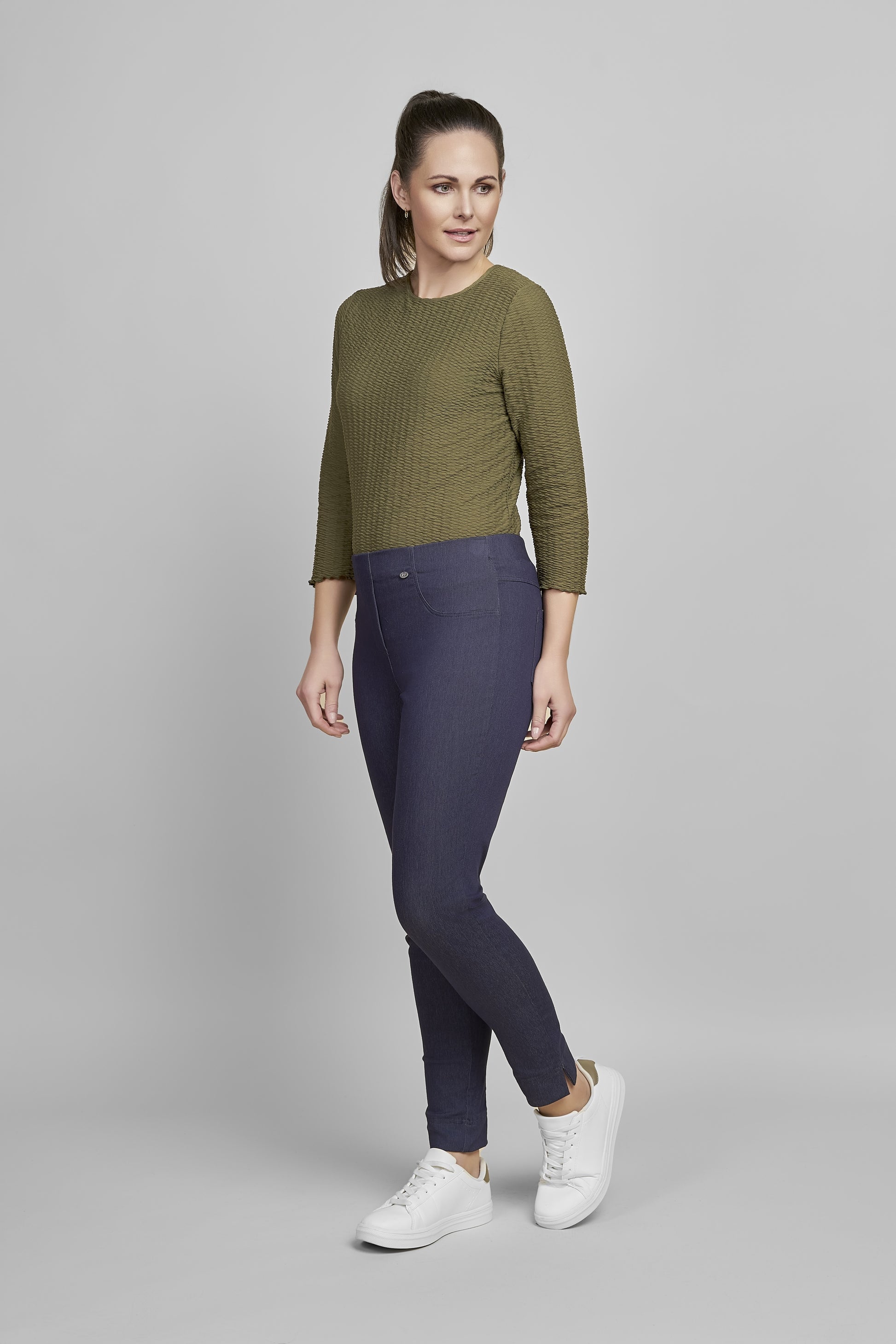 These fully elasticated, super stretch ankle grazer trousers are comfortable to wear and incredibly flattering. In a pull-on style with no buttons, zips or fastenings for a smooth super slimming silhouette