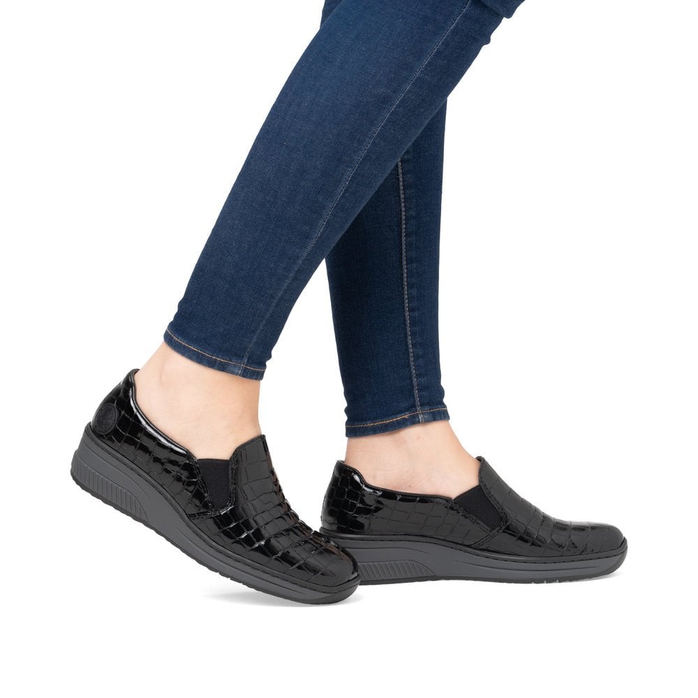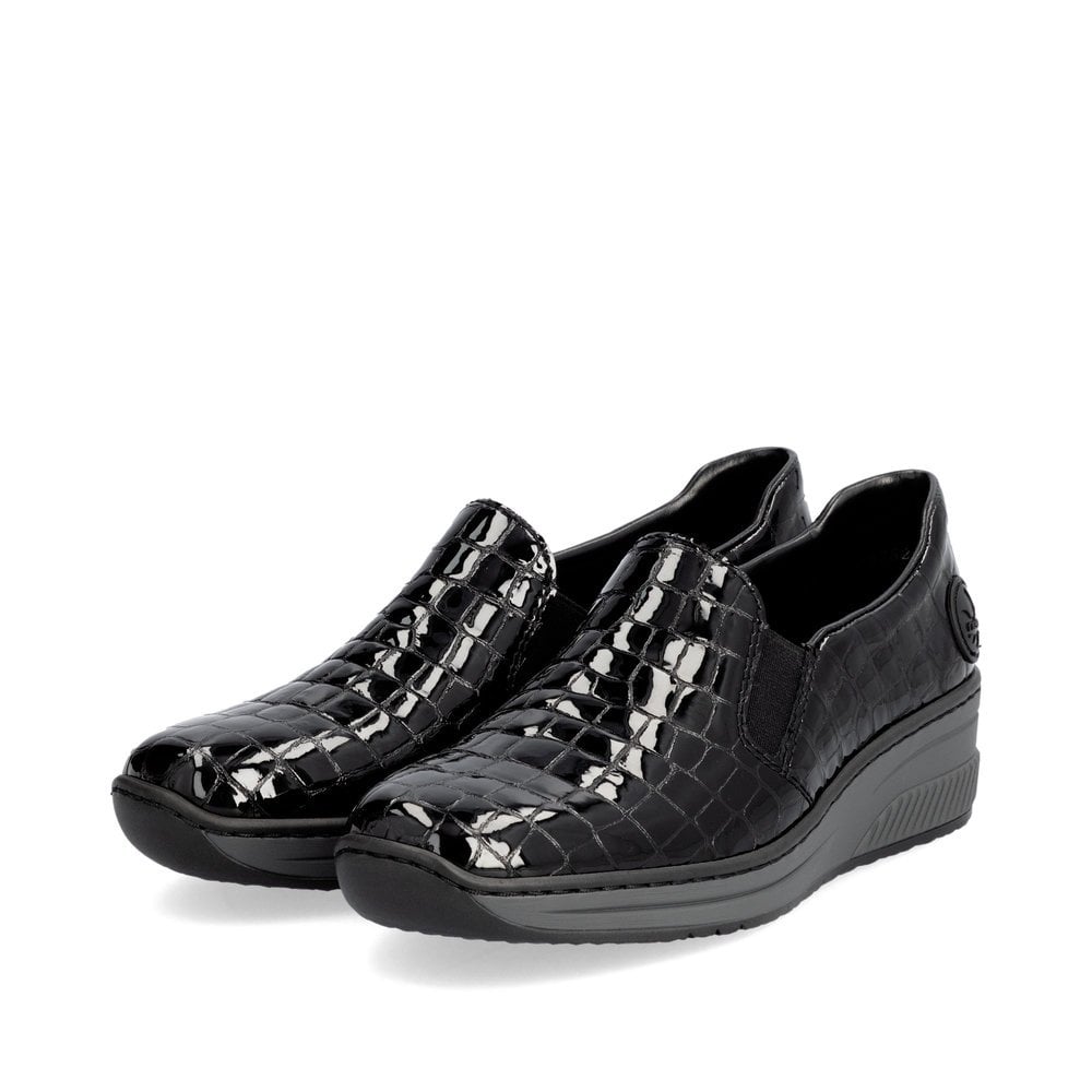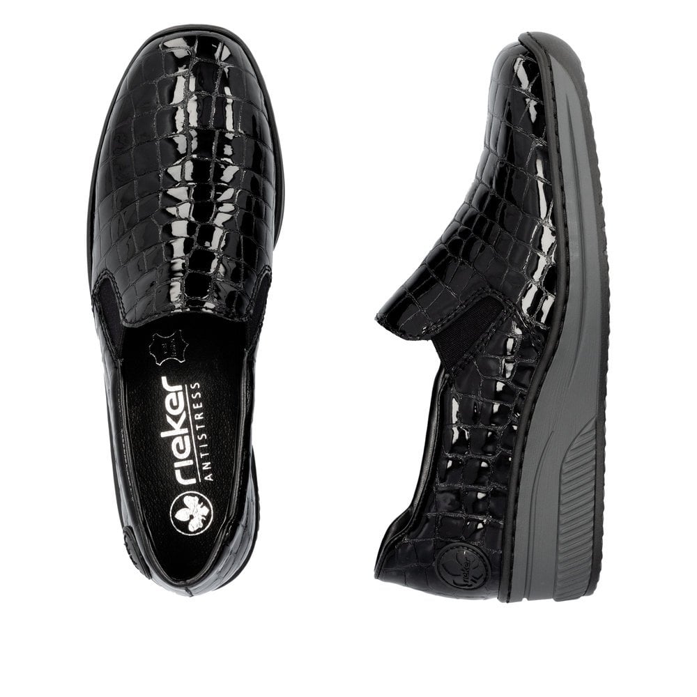 Rieker 48752 Ladies Slip On Patent Leather Shoes - Black