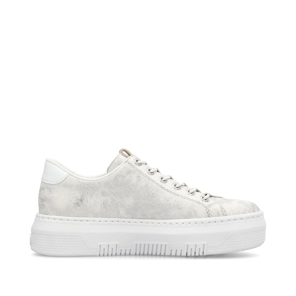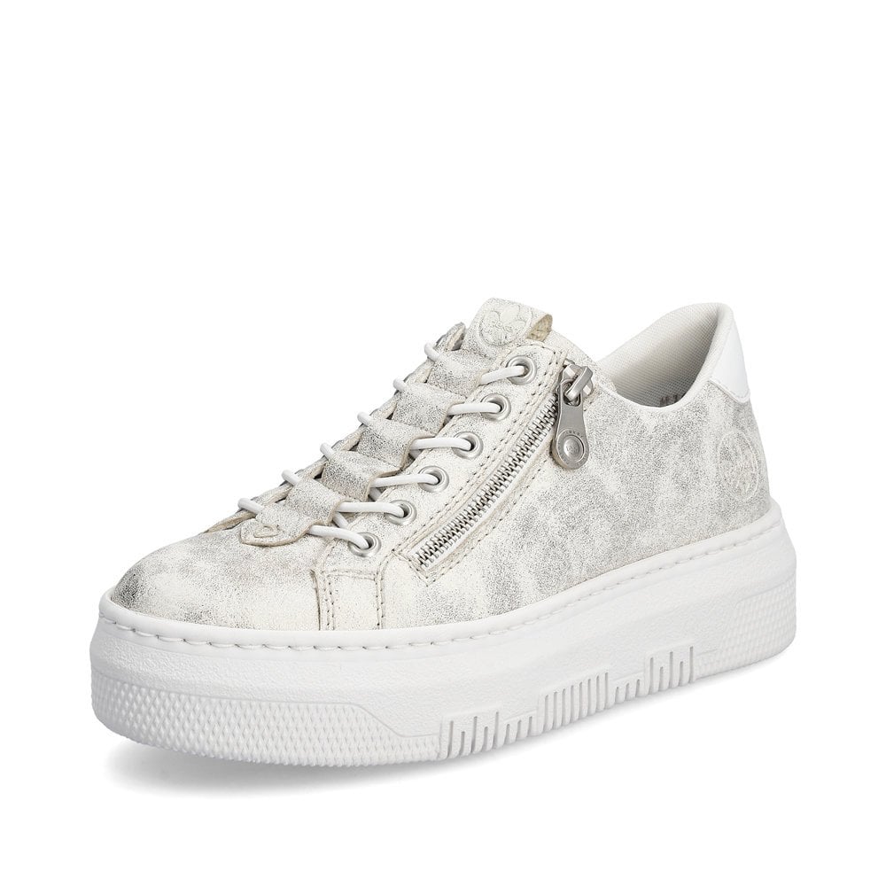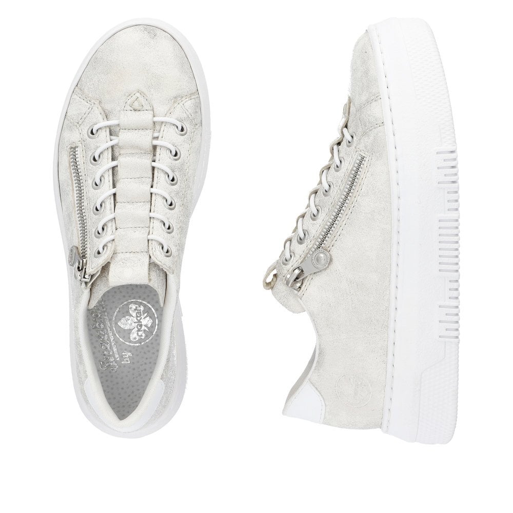 These Rieker zip up trainers in metallic beige are a perfect addition to your Spring/Summer wardrobe. Crafted with a soft synthetic upper and a chunky on-trend platform sole, along with a comfortable cushioned memory foam insoles