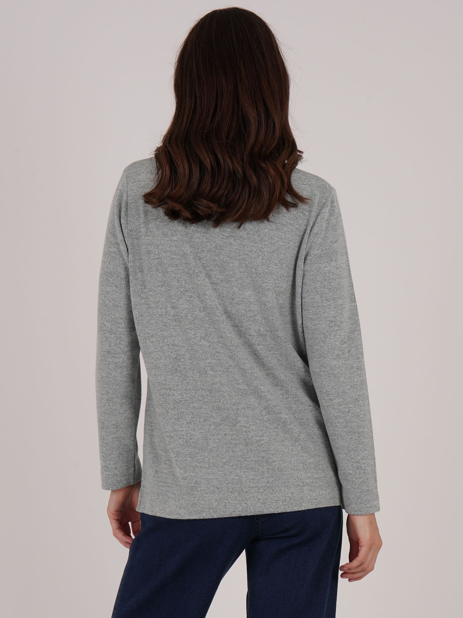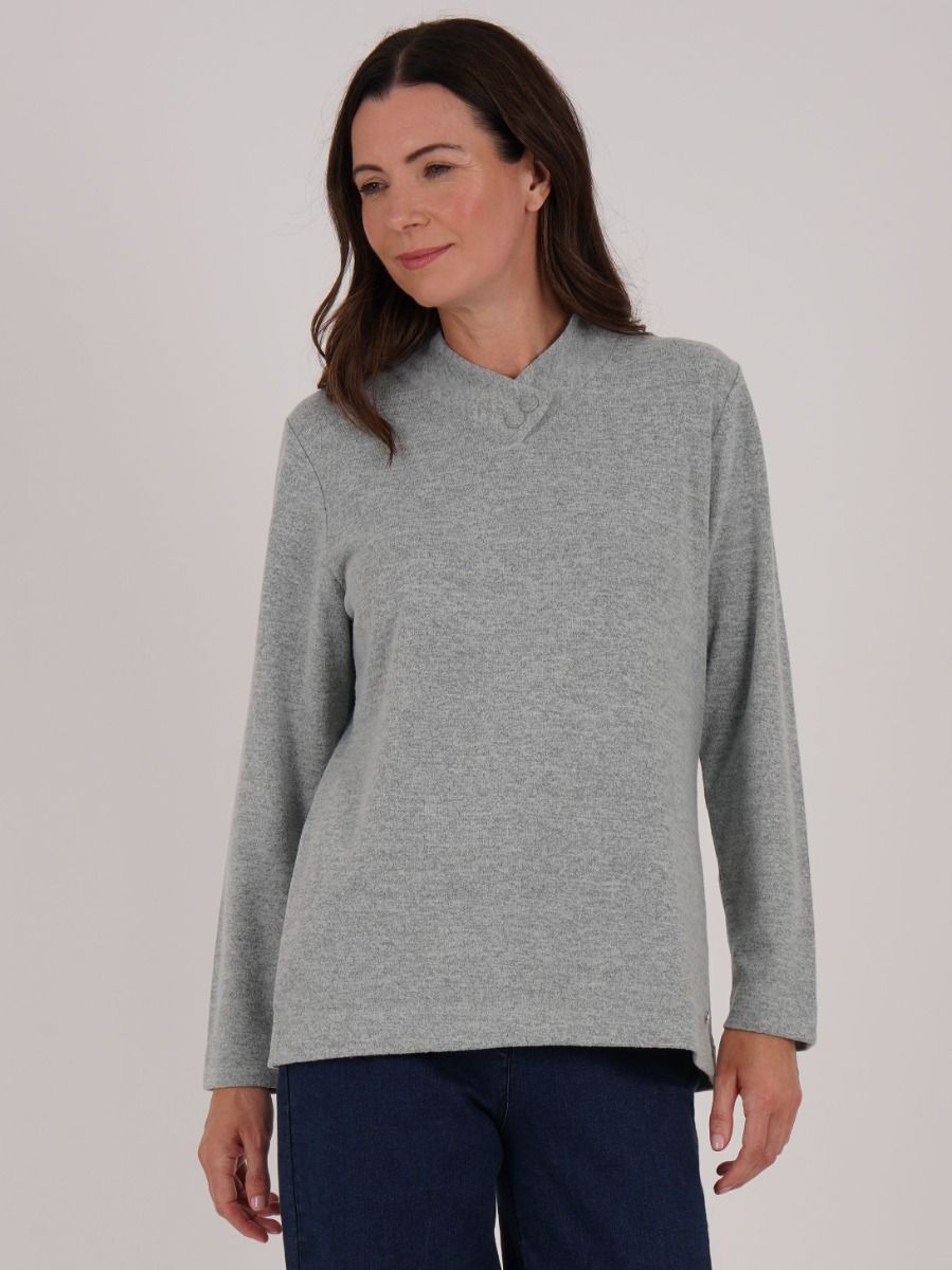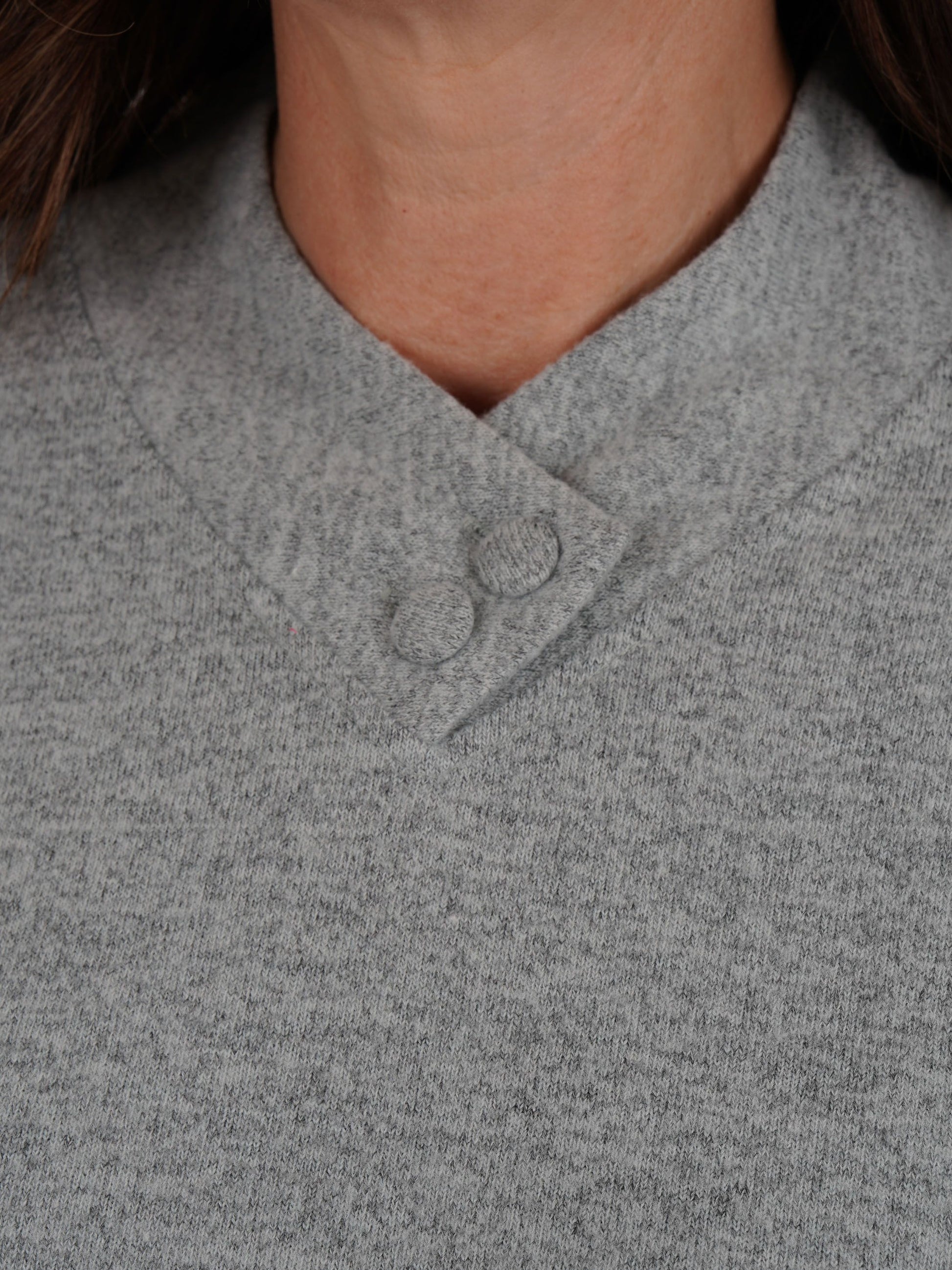 Introducing our new button neck top .The brushed jersey adds texture and warmth, while the button wrap neck creates a contemporary look. Perfect for layering, this piece will elevate any outfit. Long sleeves, and side slit complete it.