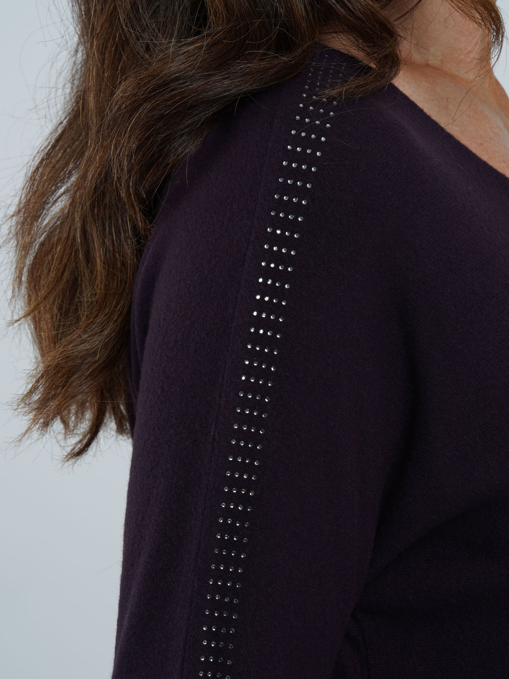 TIGI Diamante Trim V Neck Top - Blackcurrant