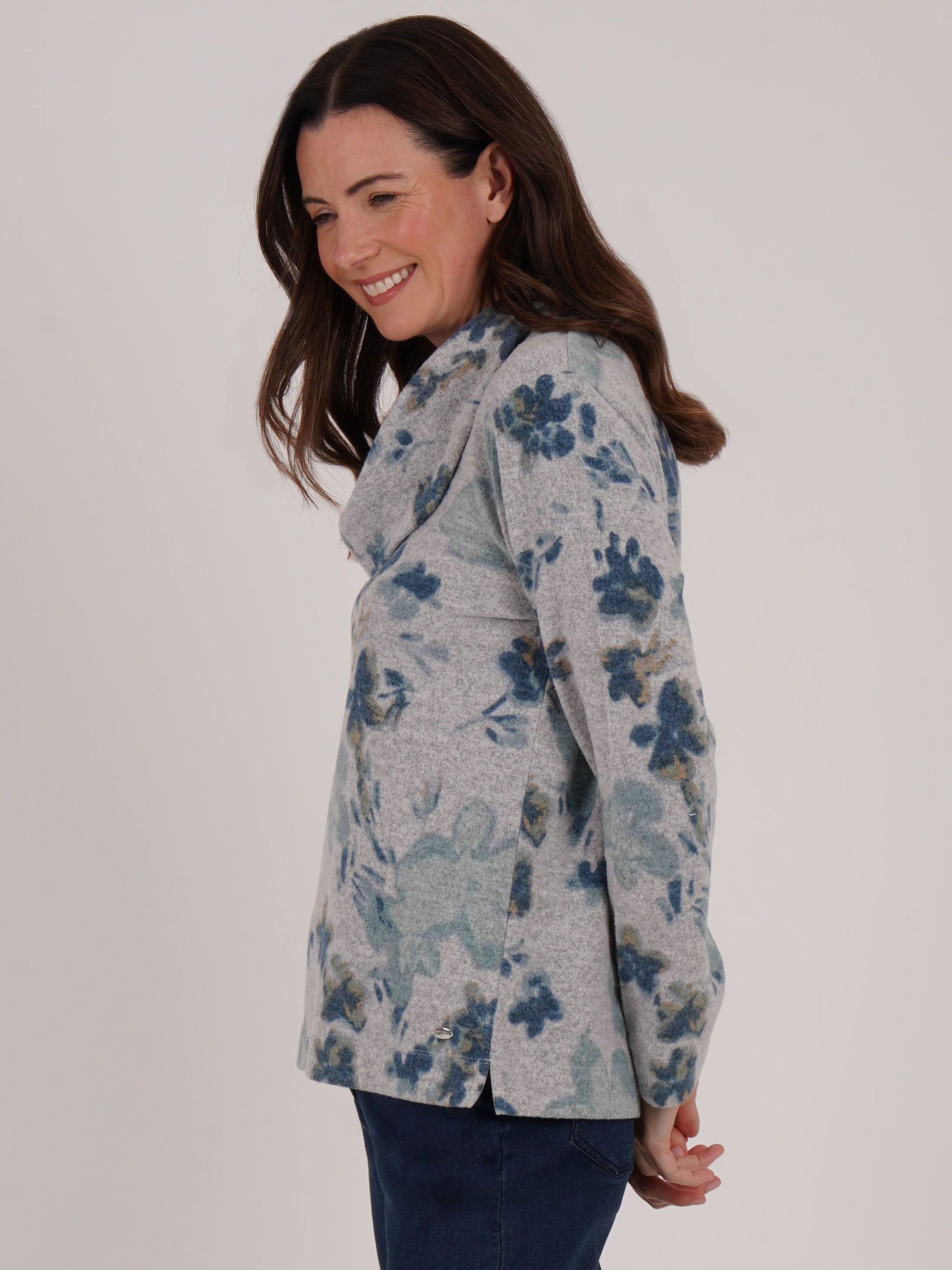 The beautiful faded floral all-over print top combines style and comfort, featuring a stylish cowl neck design that drapes beautifully. Crafted from soft brushed jersey, with long sleeves.