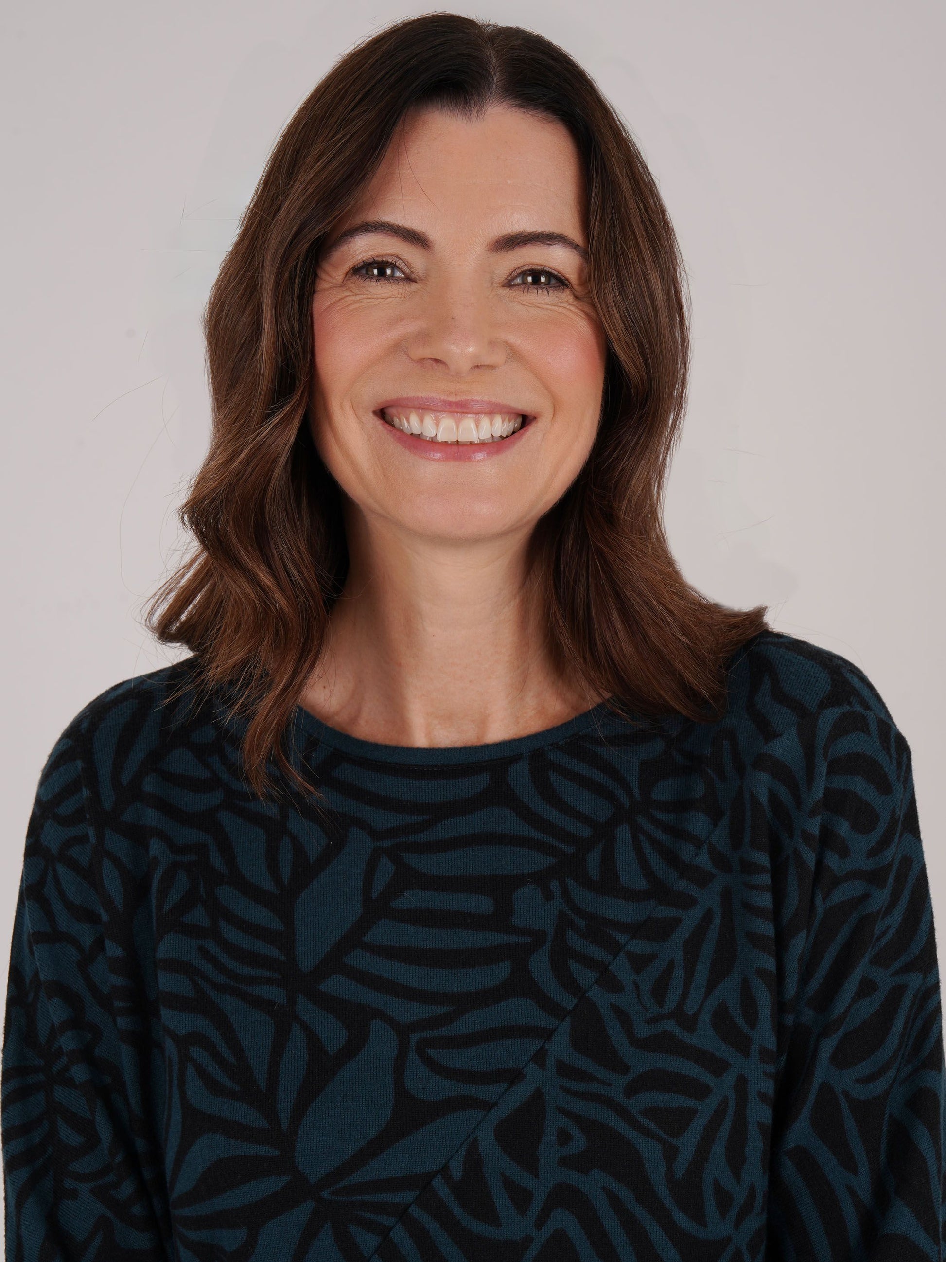 This batwing sleeve top has had a modern makeover with a two-tone design for the new season. The simple cross seam panel is elevated with a beautiful linear leaf design.