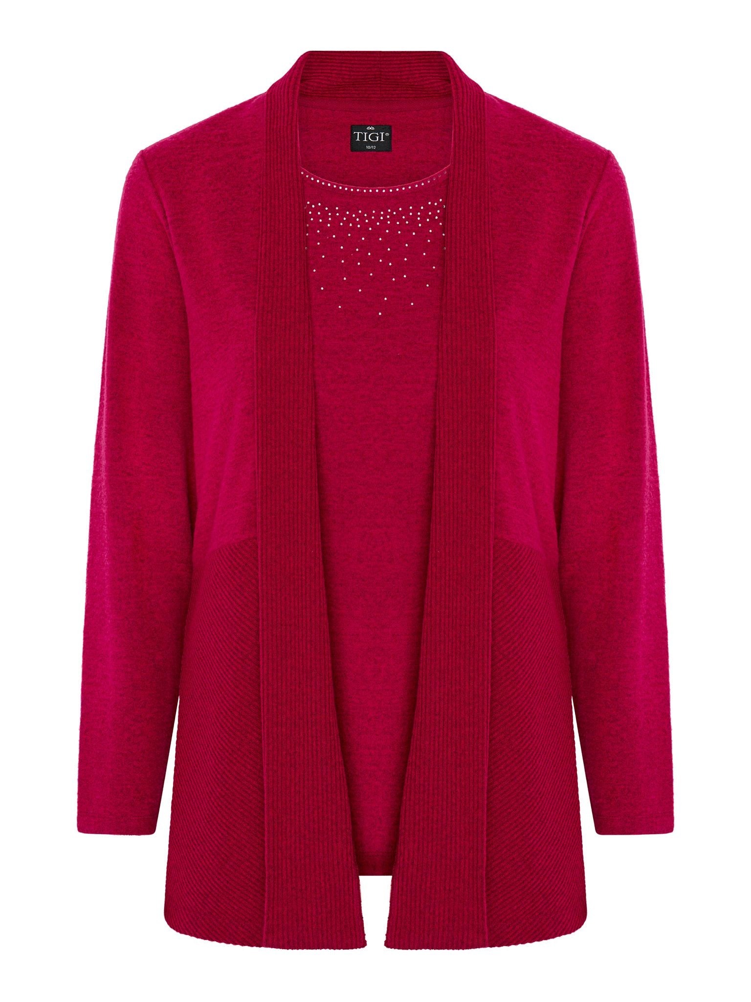 TIGI Ribbed Mock Cardi Tunic - Berry