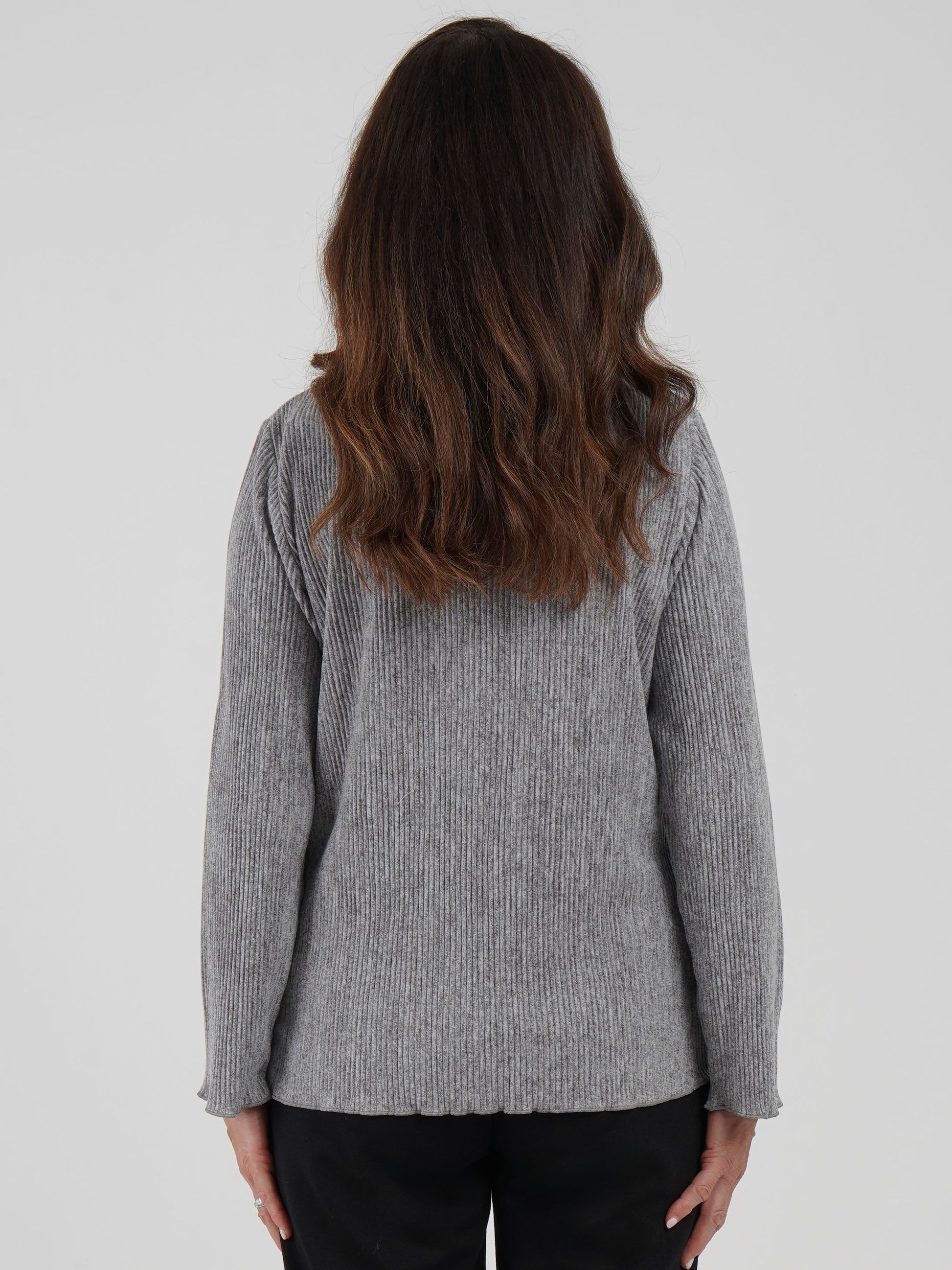 Minimal yet modern, our Plissé Top is the perfect versatile piece for endless styling possibilities. In a grey marl tone, designed with a textured plissé finish, it features a roll- neckline and long sleeves. This top is set to become your new go-to.