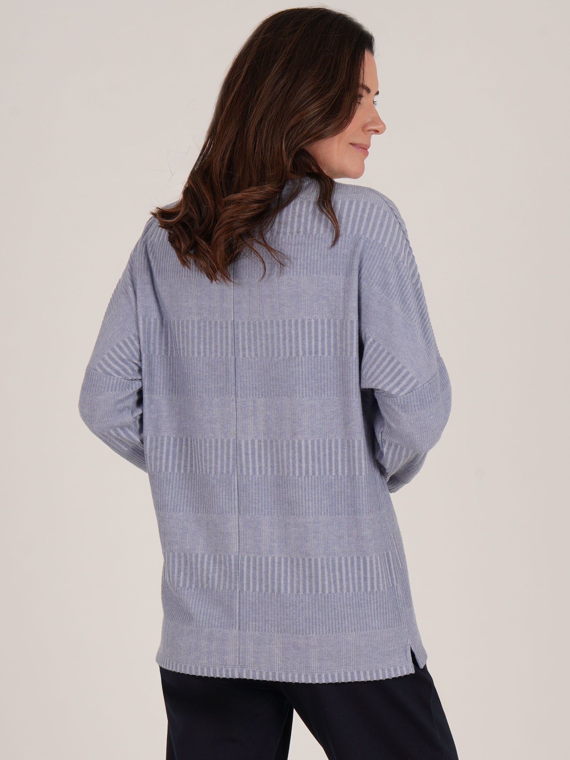 Elevate your everyday look with this textured top, featuring a subtle striped pattern, deep hem and cuff, and a relaxed fit for all-day comfort and style.