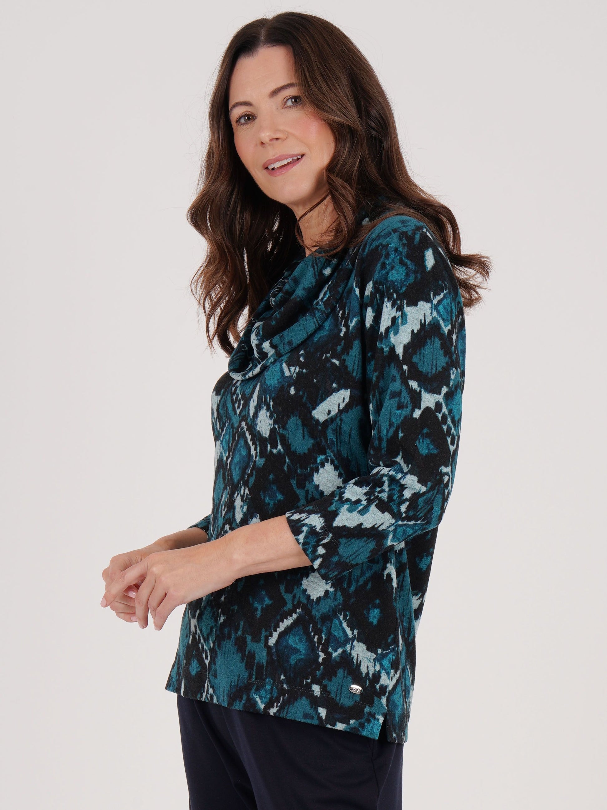TIGI Tribal Print Cowl Neck Top - Everglade